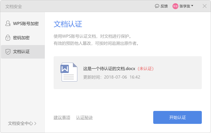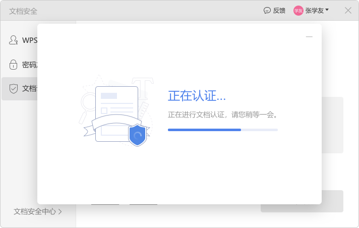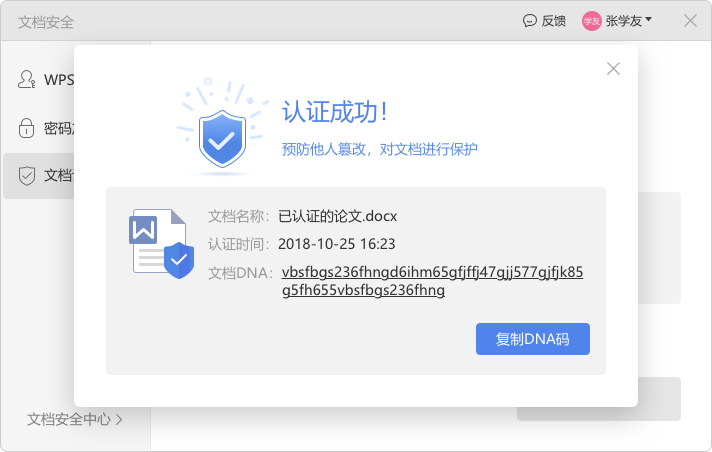 点击开始认证后进入认证过程,认证过程中无法关闭,认证成功后显示认证时间和全网唯一的文档DNA文档。
